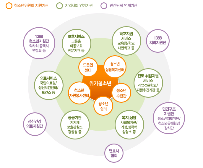 ÀÌ´Â °ð û¼Ò³âÀ» À§ÇÑ »çȸ¾ÈÀü¸ÁÀÔ´Ï´Ù. û¼Ò³â¾ÈÀü¸Á¿¡¼´Â Àü±¹ÀÇ Ã»¼Ò³â»ó´ãÁö¿ø¼¾ÅͰ¡ Çãºê(HUB)¿ªÇÒÀ» ´ã´çÇÏ¿©, »ó´ãÀ» ÅëÇØ ¹®Á¦¸¦ Æò°¡ÇÑ µÚ ÇØ°á¿¡ ÇÊ¿äÇÑ °¢Á¾ ¼ºñ½º Á¦°ø ±â°ü¿¡ ¿¬°èÇϴ¿ø½ºÅé ¼ºñ½º¸¦ Á¦°øÇÕ´Ï´Ù.