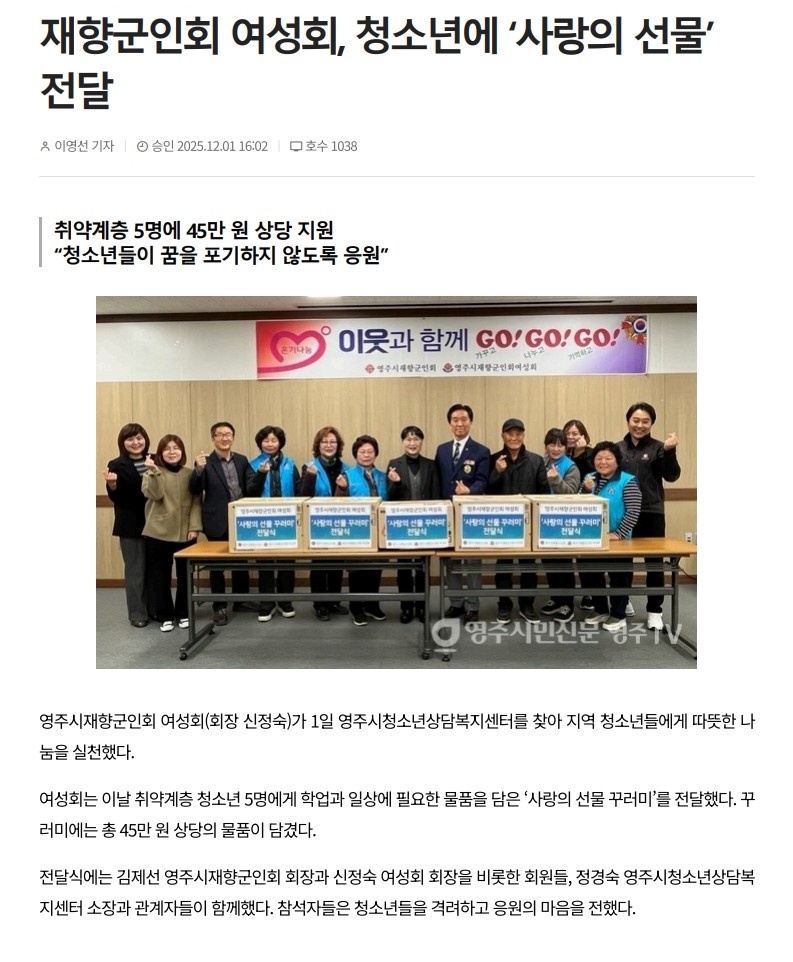 2025³â ¿µÁÖ½ÃÀçÇⱺÀÎȸ ¿©¼ºÈ¸ »ç¶ûÀÇ ¼±¹°²Ù·¯¹Ì Àü´Þ½Ä