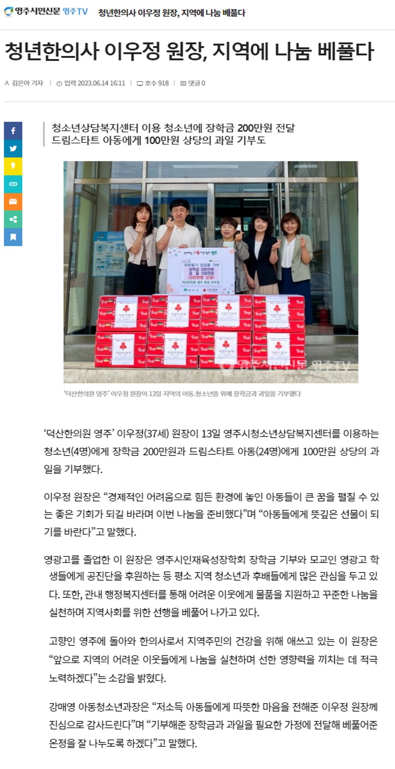 ´ö»êÇÑÀÇ¿ø ÀÌ¿ìÁ¤ ¿øÀå_ÀåÇÐ±Ý 200¸¸¿ø Àü´Þ
