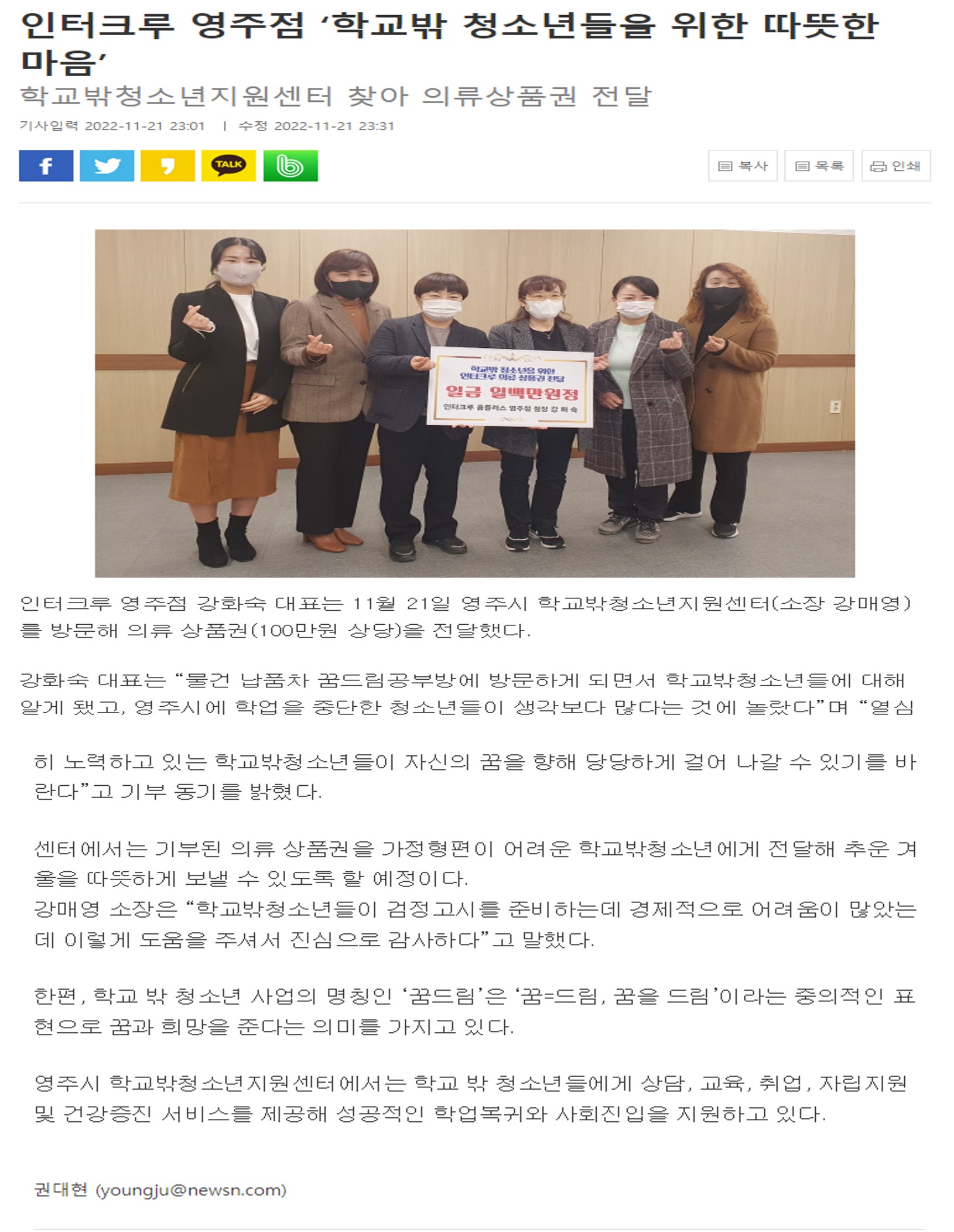 ÀÎÅÍÅ©·ç ¿µÁÖÁ¡ ¡®Çб³¹Û û¼Ò³âµéÀ» À§ÇÑ µû¶æÇÑ ¸¶À½¡¯