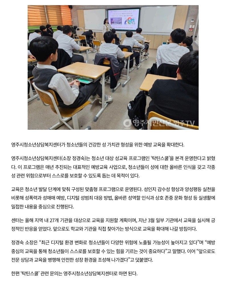 ¿µÁÖ½Ãû¼Ò³â»ó´ãº¹Áö¼¾ÅÍ, ¼º±³À° 'Źƾ½ºÄð' º»°Ý ¿î¿µ