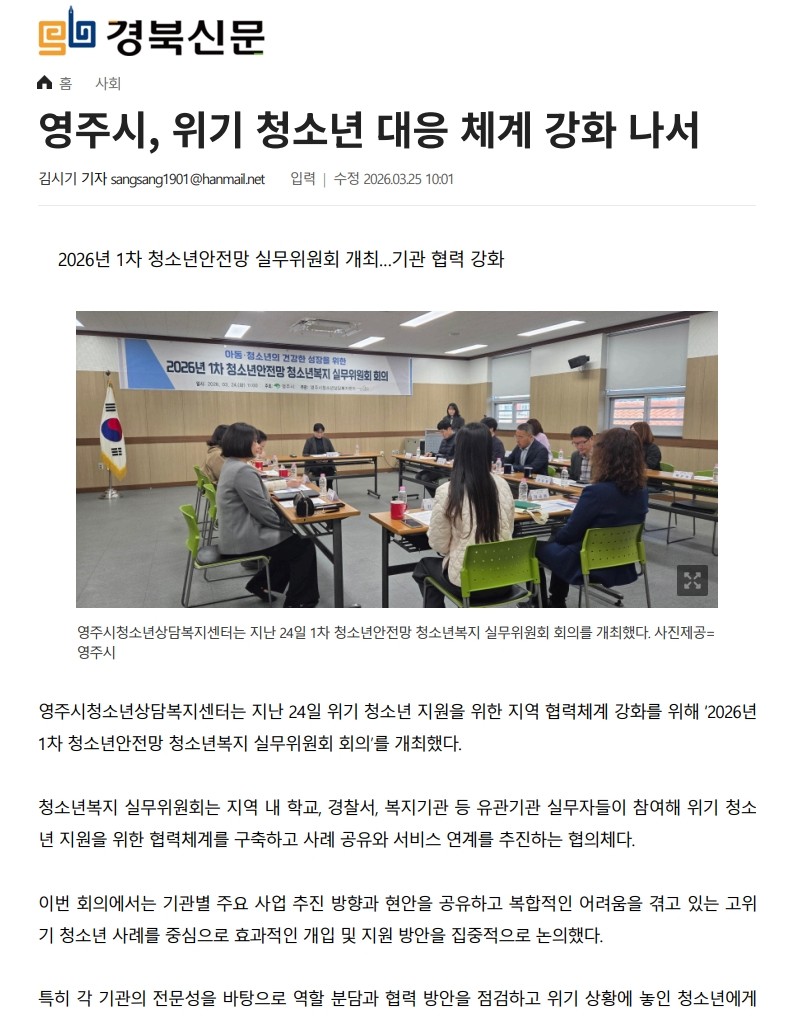 2026³â 1Â÷ û¼Ò³â¾ÈÀü¸Á û¼Ò³âº¹Áö ½Ç¹«À§¿øÈ¸ ȸÀÇ